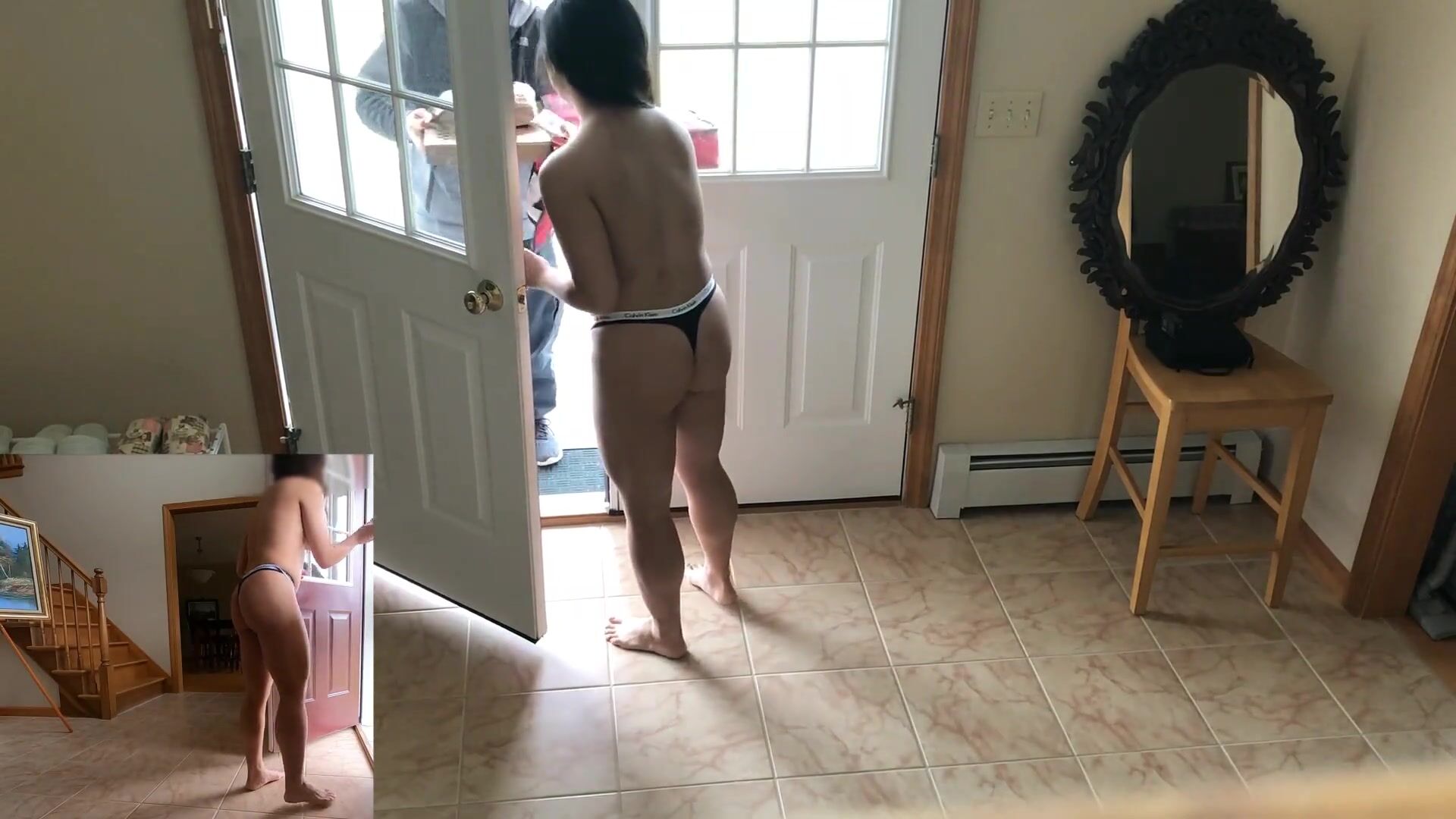 I Dared my GF to get the Pizza Delivery in just a Thong