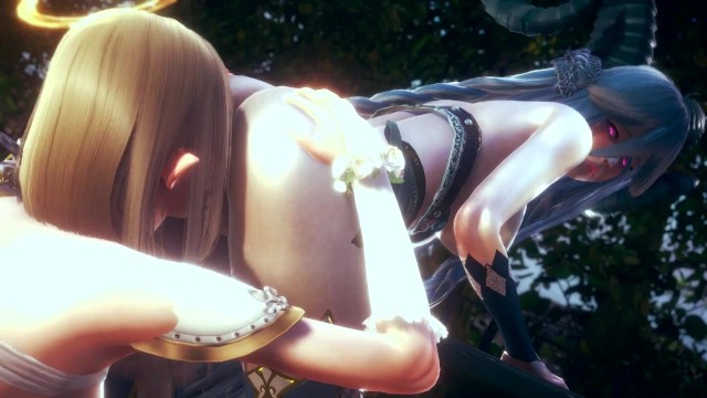 3D Hentai: DEMONESS AND ANGEL ARRANGED LESBIAN CARESSES