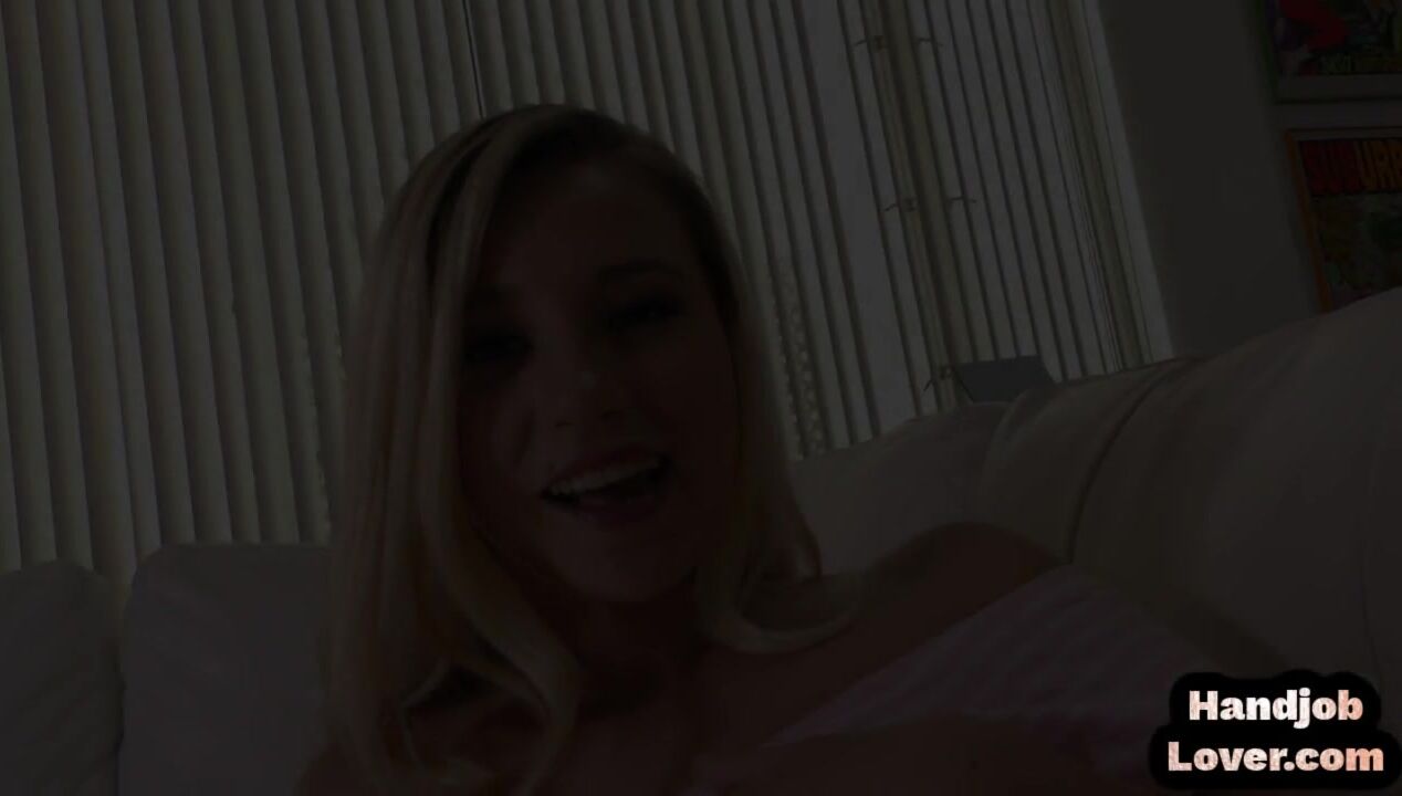 Teenage blonde cutie teasing and tugging hard shaft in POV