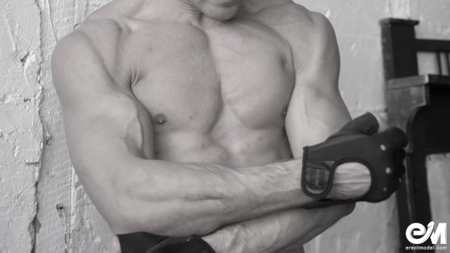 Naked male bodybuilder shows his huge big cock after hard workout