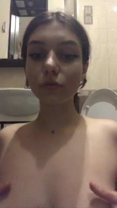 Hottie teasing her tits on the toilet
