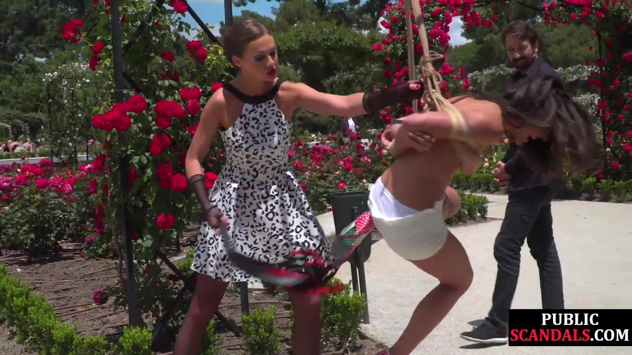 BDSM babe publicly whipped n humiliated by master n mistress