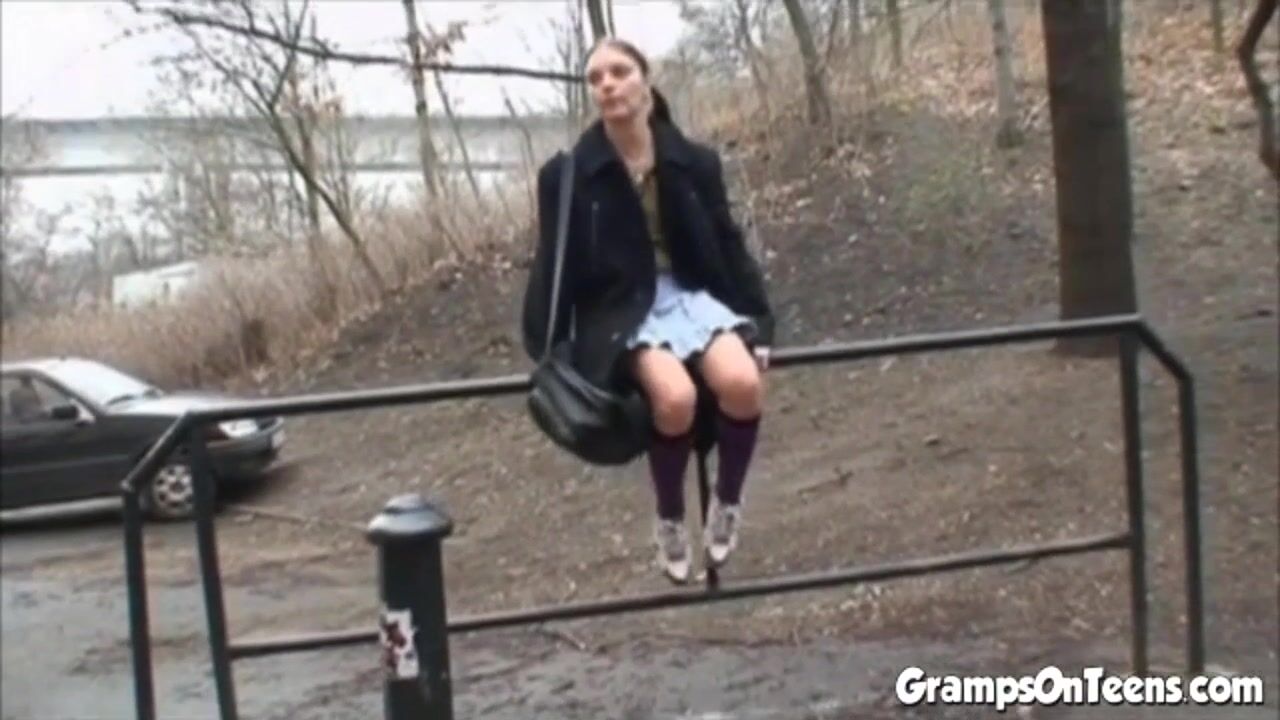 Petite brunette teen rides oldie