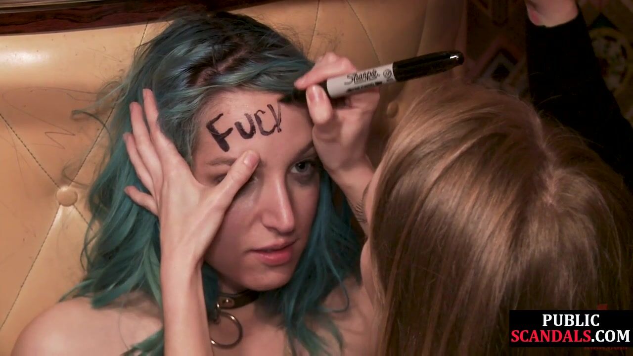 Useless coloredhair bonded babe licks and throats in public