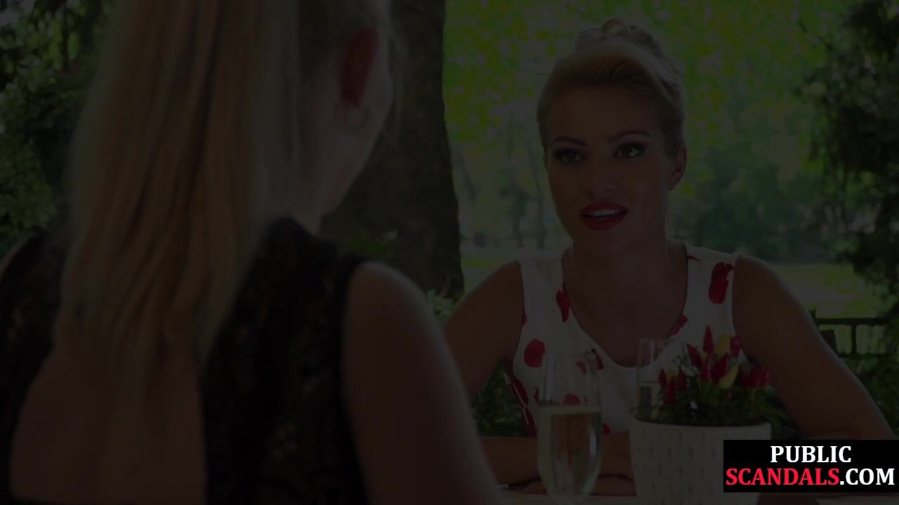 Leashed busty MILF humiliated in public deepthroating 3some