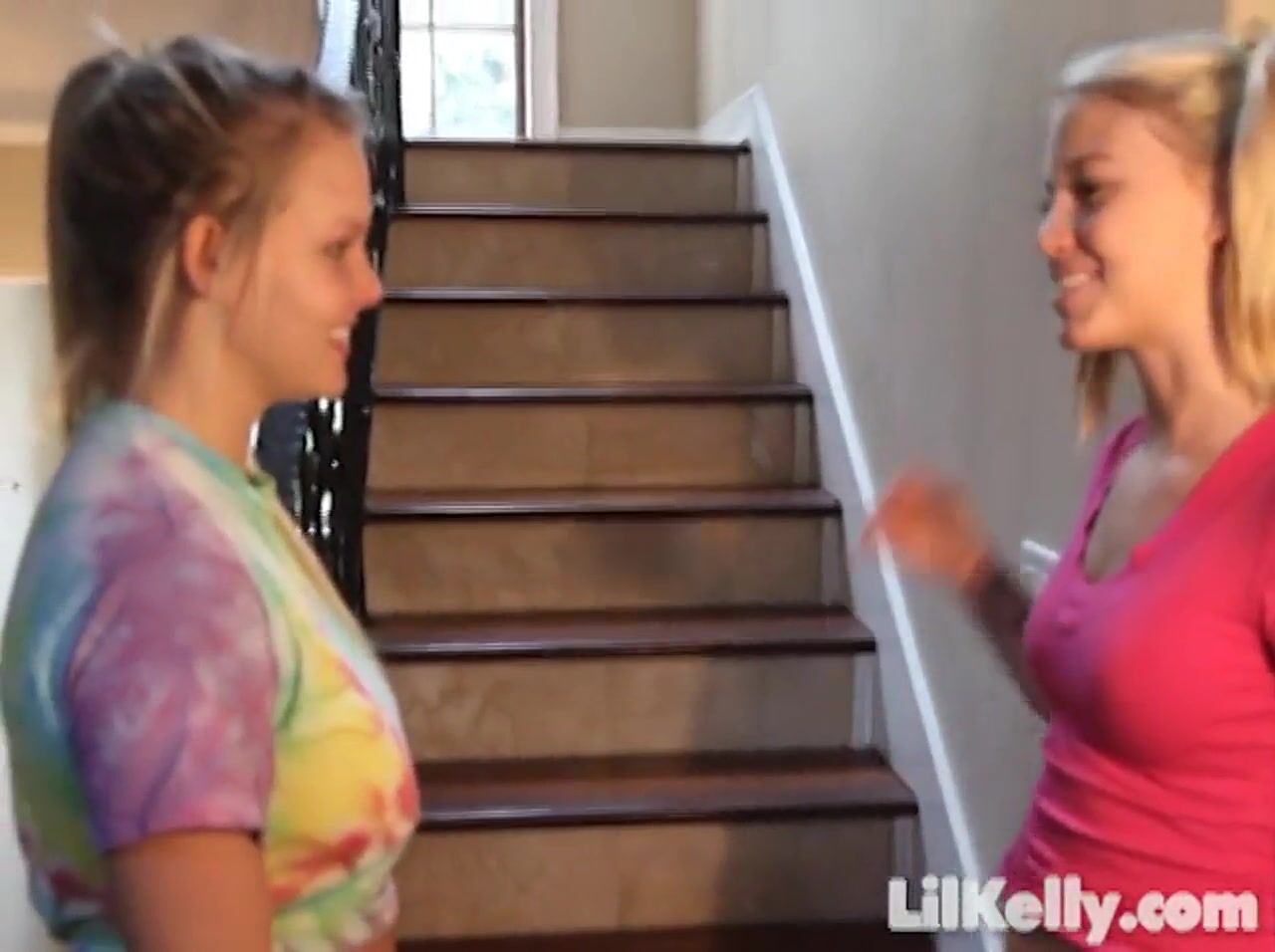 Lil kelly masturbates on the staircase