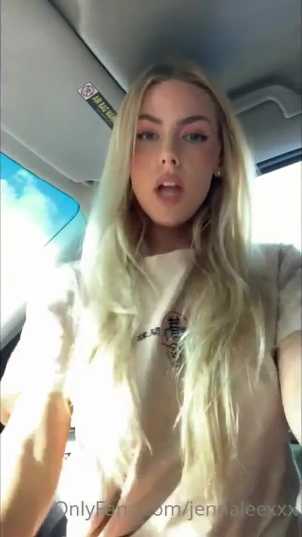 Sexy Blonde shows off her big boobs in public in car