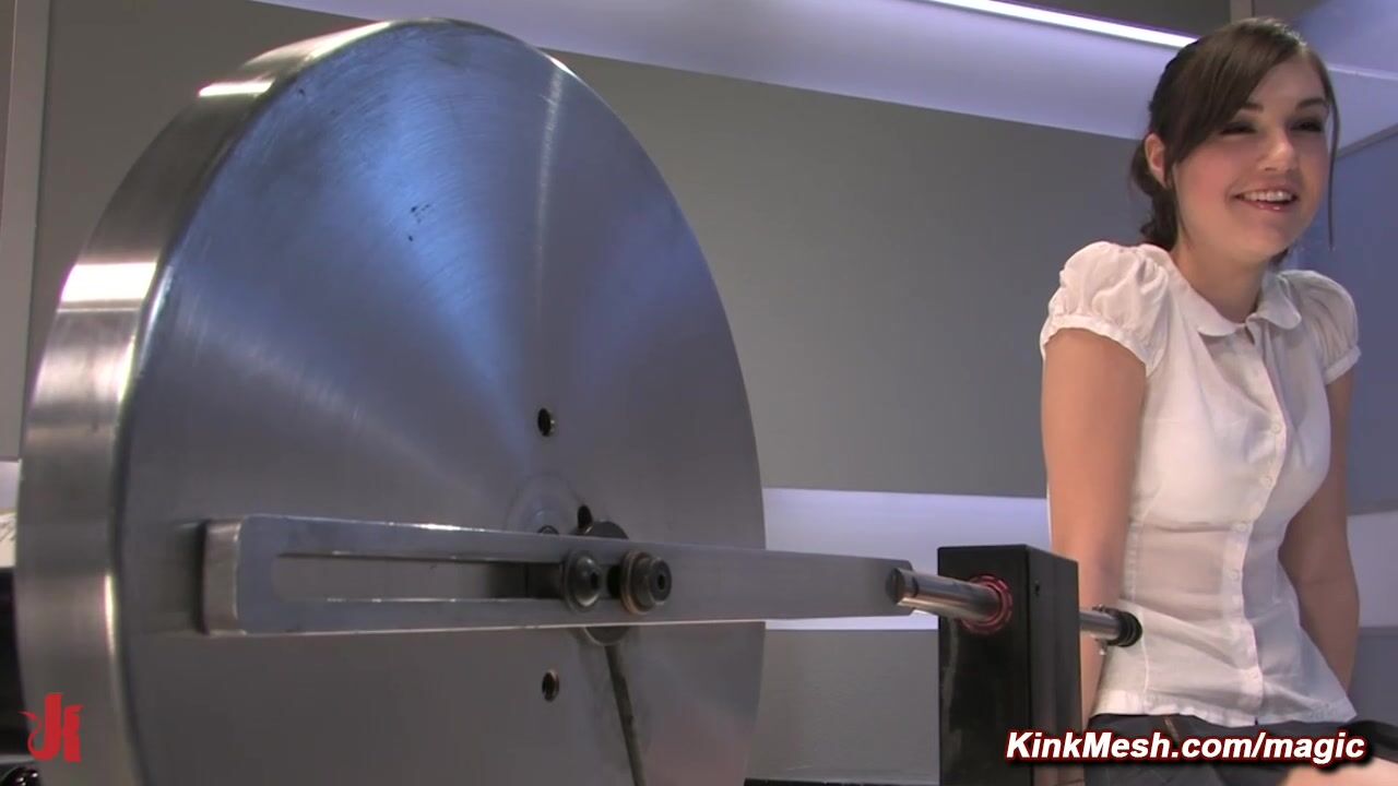 Eighteen years old brunette gets machine fucked