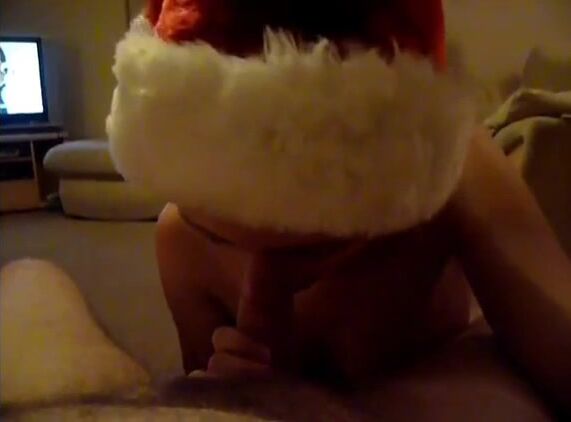 Small titted wife give an Xmas blowjob