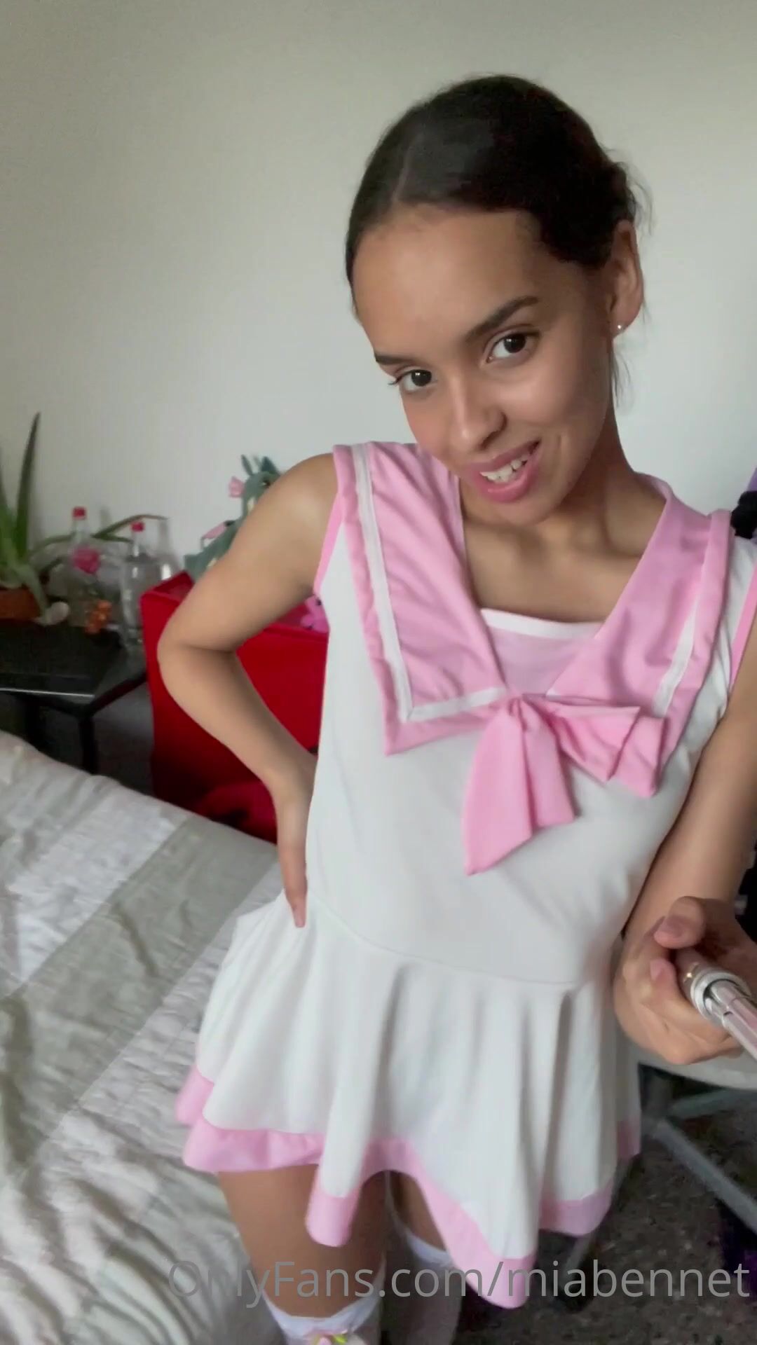 Mia Bennet shows off pink dress and pink pussy