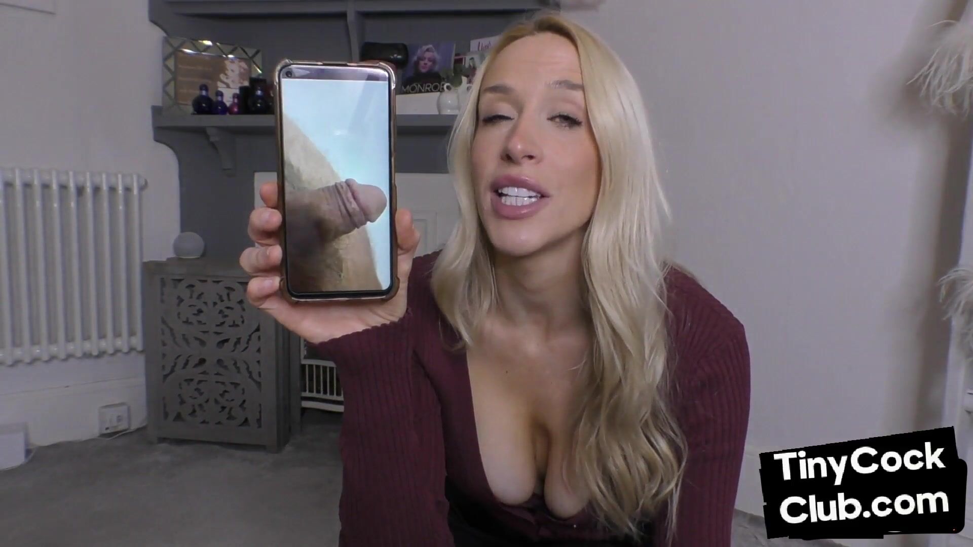 Bigtitted CFNM domina mocking pictures of tiny cocks