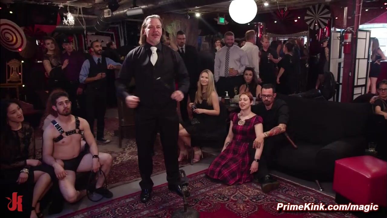 Lesbians Melissa Moore and Kira Noir slapping and tribbing at BDSM party