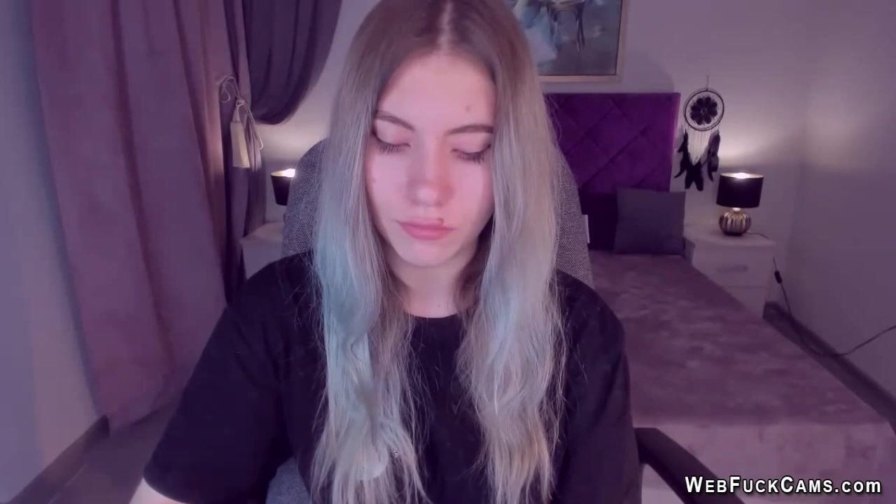 Big tits tattooed blonde amateur teen SimaDark fingers shaved pussy on webcam