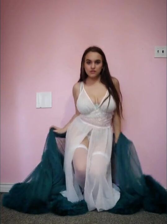 Busty Brunette's Sensual Striptease in BDSM-themed Lingerie