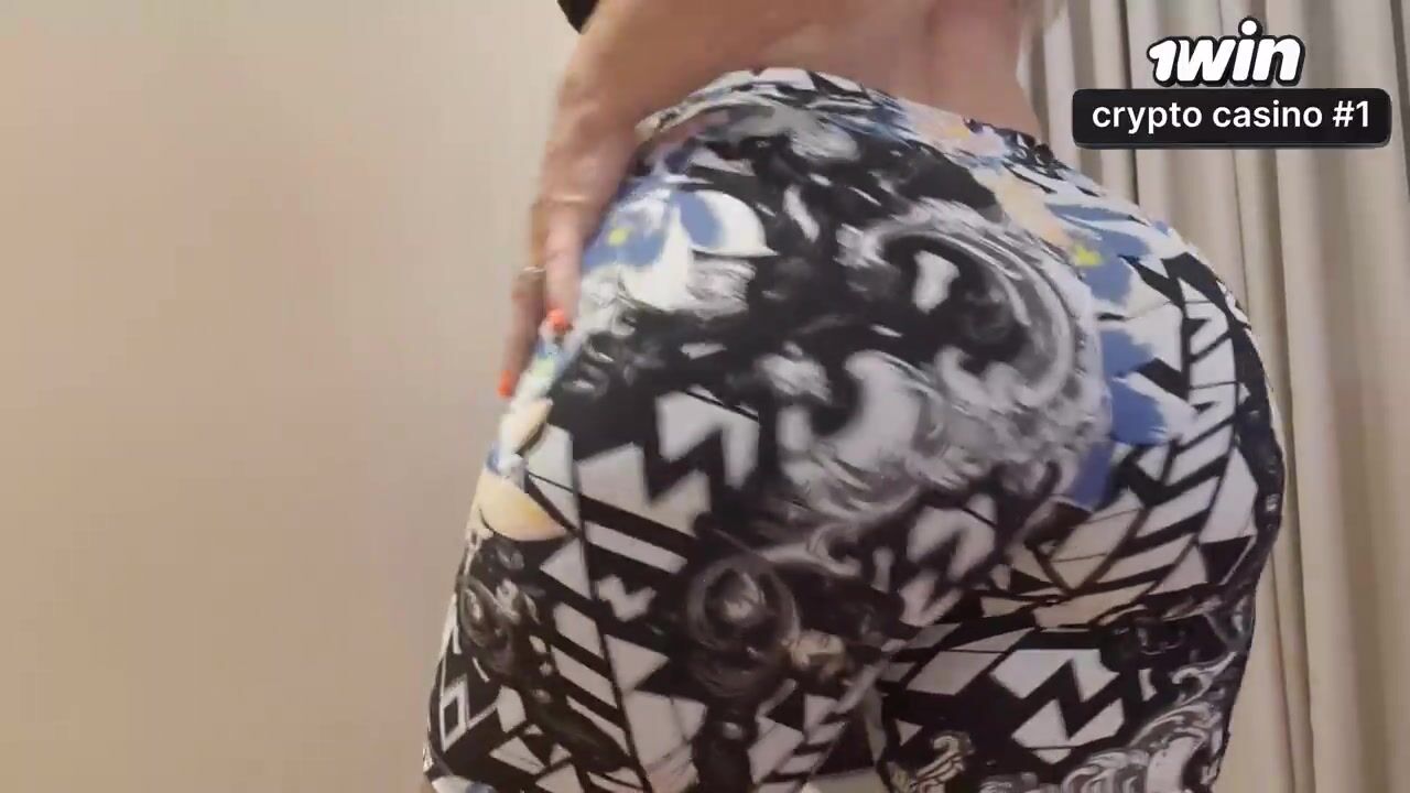 Rebolando de shortinho de academia e empinando o bumbum na cadeira.
