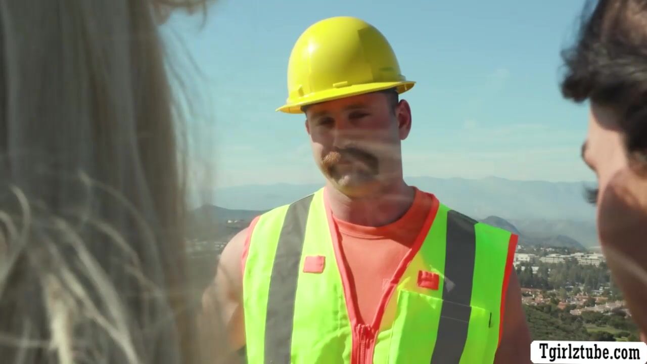 Construction worker drills the ass of two horny TS
