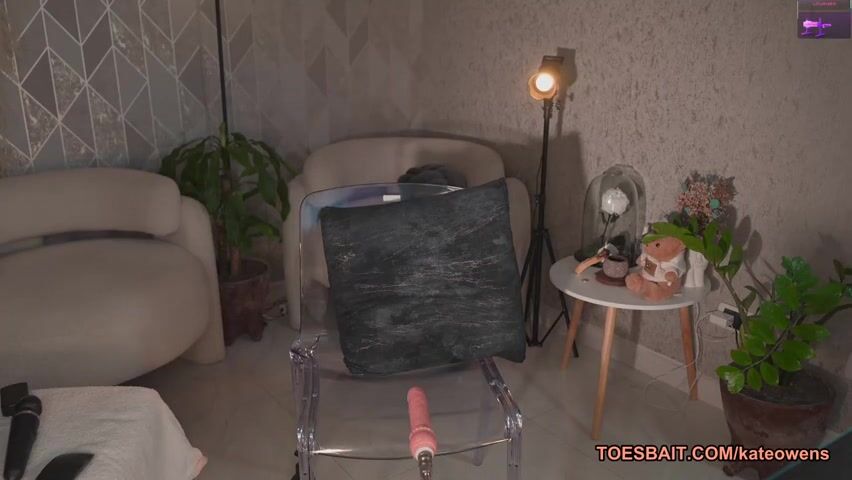 Curvy pink hair lady spreading her legs